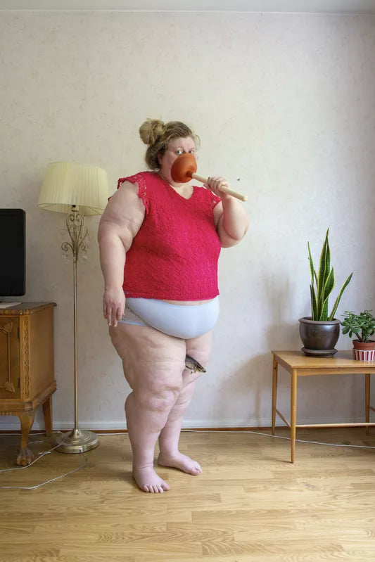Simultaneously seductive, abject, stylized and vulnerable, Susiraja’s works are grounded in unabashed yet private performances for the camera. In these stagings, household objects—tablecloths, umbrellas, hot dogs, bananas, treadmills, rubber duckies and dead fish—become co-conspirators in her confrontations with the lens. Situated between the slapstick and the deadpan, Susiraja’s works locate uneasiness in the comfortable, and vice versa. Iiu Susiraja (born 1975) earned an MFA from the Finnish Academy of Fine Arts. She was featured as the cover story for ArtForum’s February 2022 issue. Her recent solo exhibitions include MoMA PS1, Ramiken Gallery, SKMU Museum, KIASMA, Kadel Willborn Gallery, François Ghebaly Gallery, PS2 Gallery, VB Photographic Centre, Ramiken Crucible and Fotogalleriet Format. Her work is in public and private collections worldwide, including at the Adam Lindenmann Collection, the University of Chicago, the Rubell Family Collection, the Finnish Museum of Photography collection, Kiasma Museum of Contemporary Art and the Finnish National Gallery.