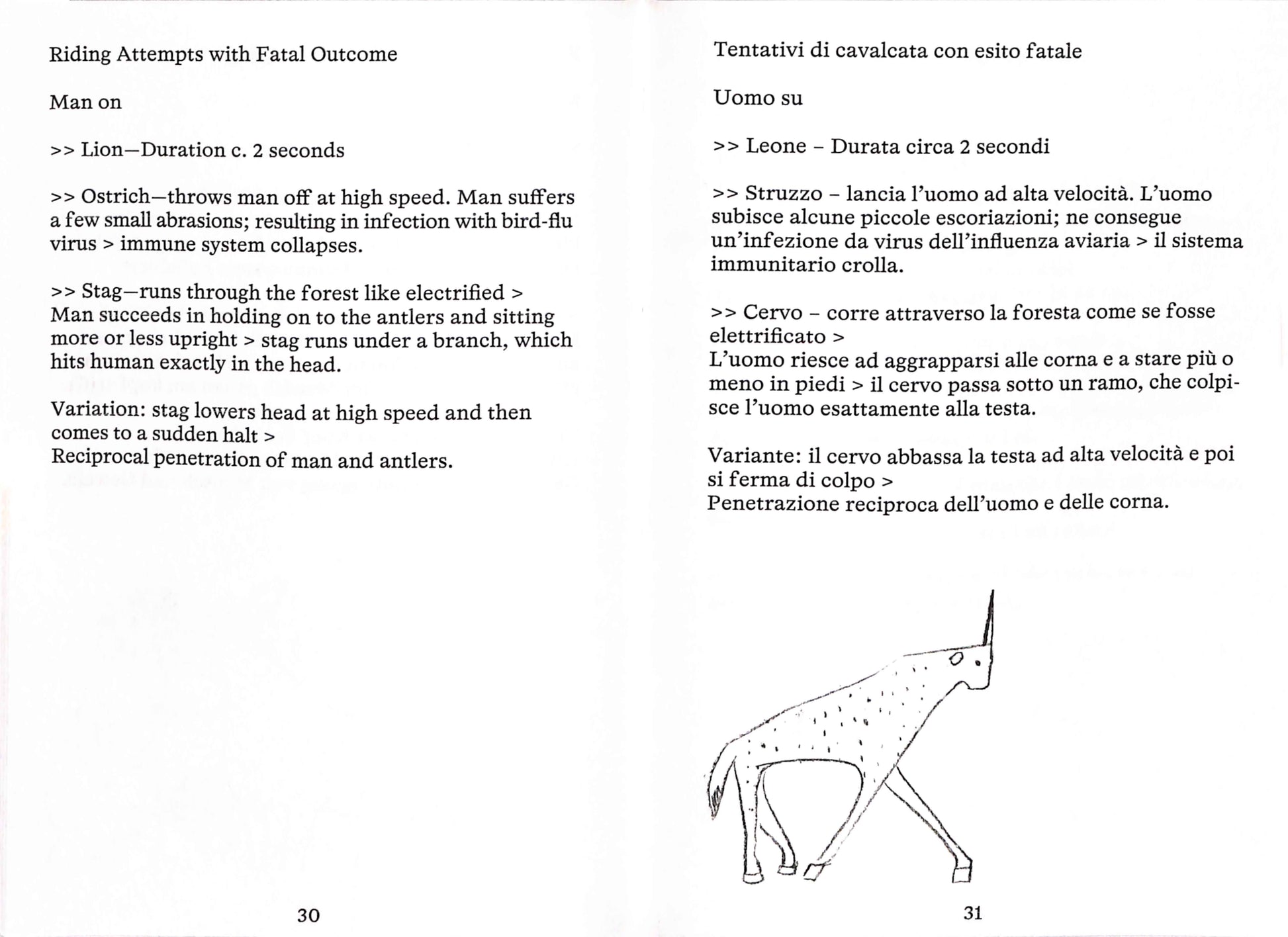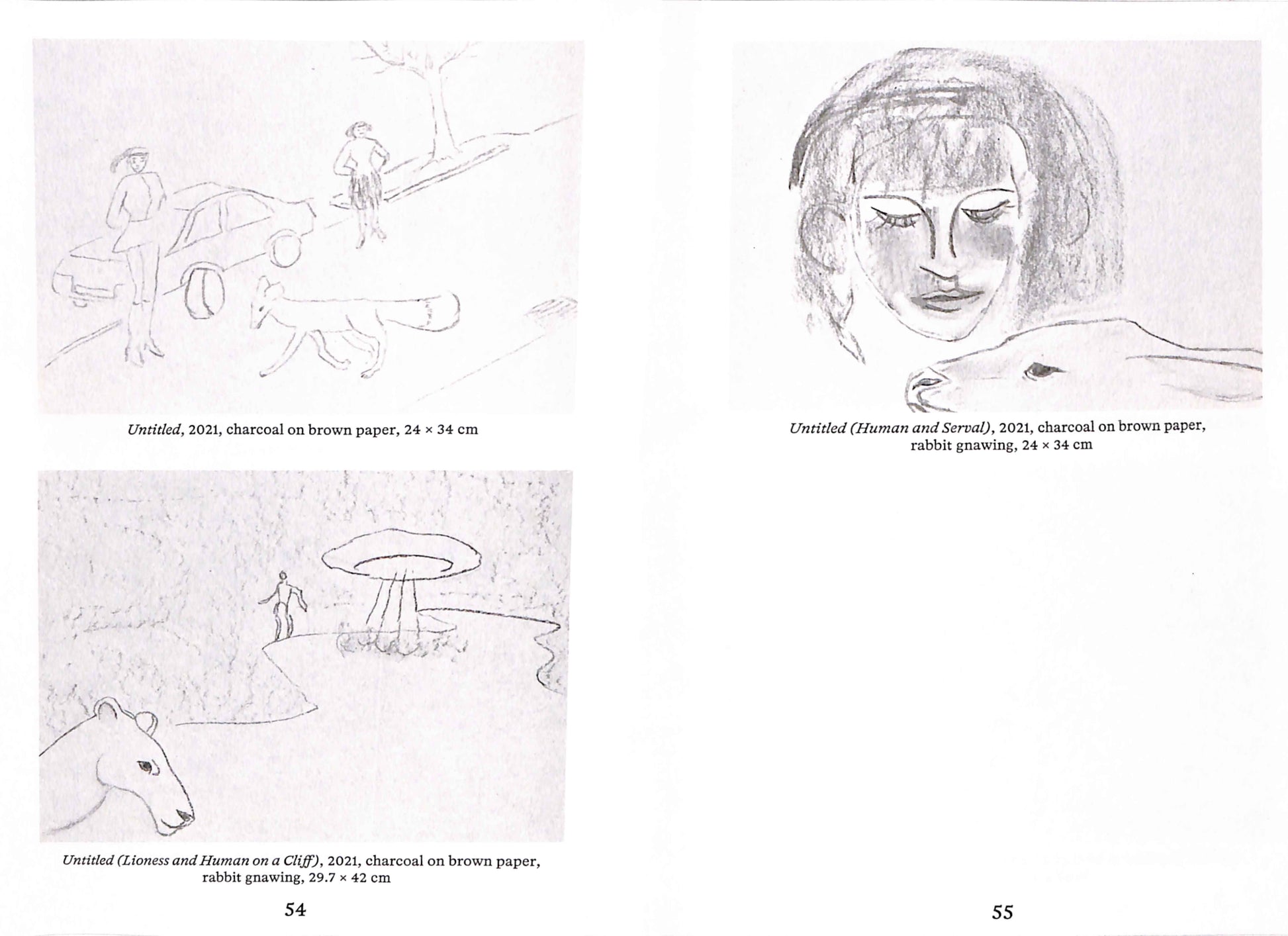 The volume collects six fables the artist wrote in the early 2000s—the only ones Saeed ever shared—which explore fundamental issues of interspecies coexistence, combining scientific, ethical, and philosophical motivations. These short stories expand Saeed’s research on the relationships between animals—both human and nonhuman—with an unusual, ironic, and paradoxical take. As Lorenzo Giusti highlights, these tales anticipate the themes of Saeed’s visual research, enriching the narrative apparatus of her artistic production, and providing essential interpretive keys for her oeuvre.