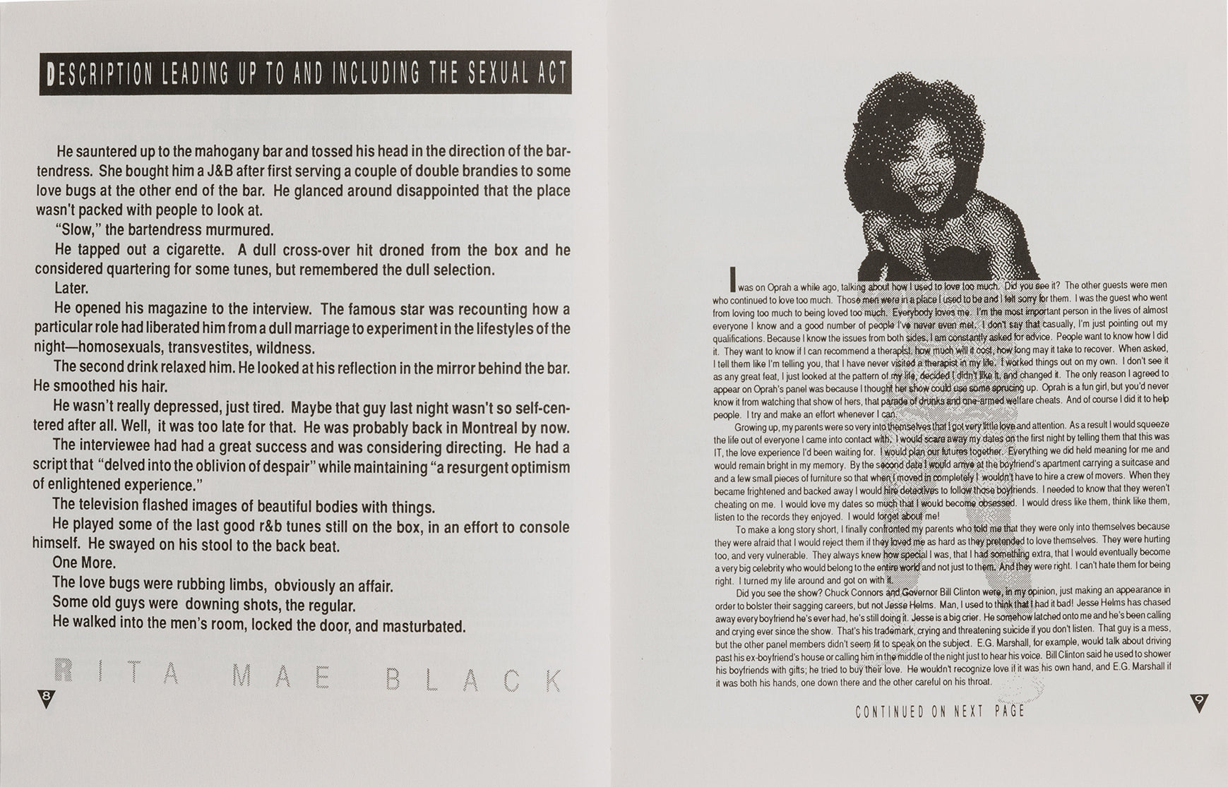 As House music thrived, THING captured the multidisciplinary nature of the scene, opening its pages to a wide range of subjects: poetry and gossip, fiction and art, interviews and polemics. The HIV/AIDS crisis loomed large in its contents, particularly in the personal reflections and vital treatment resources that it published. An essay by poet Essex Hemphill was published alongside the gossip columnist Michael Musto and Rupaul dished wisdom alongside a diary from the March on Washington for Lesbian, Gay, and Bi Equal Rights and Liberation. Joan Jett Blakk’s revolutionary presidential campaign is contained in these pages, as are some of the most underground, influential literary voices of the time, such as Dennis Cooper, Vaginal Davis, Gary Indiana, Marlon Riggs, David Wojnarowicz, and even David Sedaris.