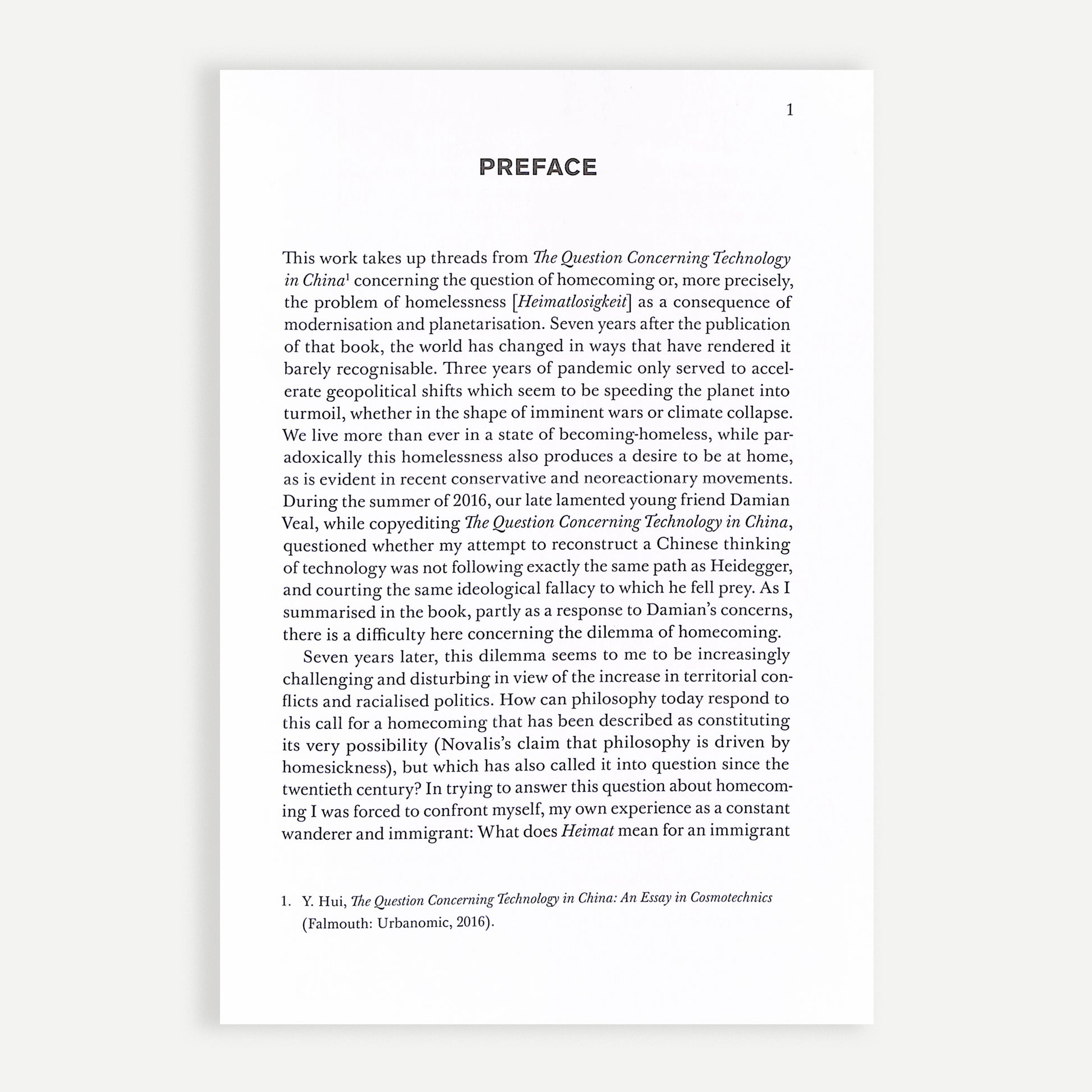 With the unstoppable advance of global capitalism, the Heimatlosigkeit (homelessness) which twentieth-century European philosophers spoke of, and which Heidegger declared had become the ‘destiny of the world’, is set to become ever more pathological in its consequences. But rather than dreaming of an impossible return to Heimat, Yuk Hui argues that today thinking must start out from the standpoint of becoming-homeless—which also implies thinking a Post-Europe condition.